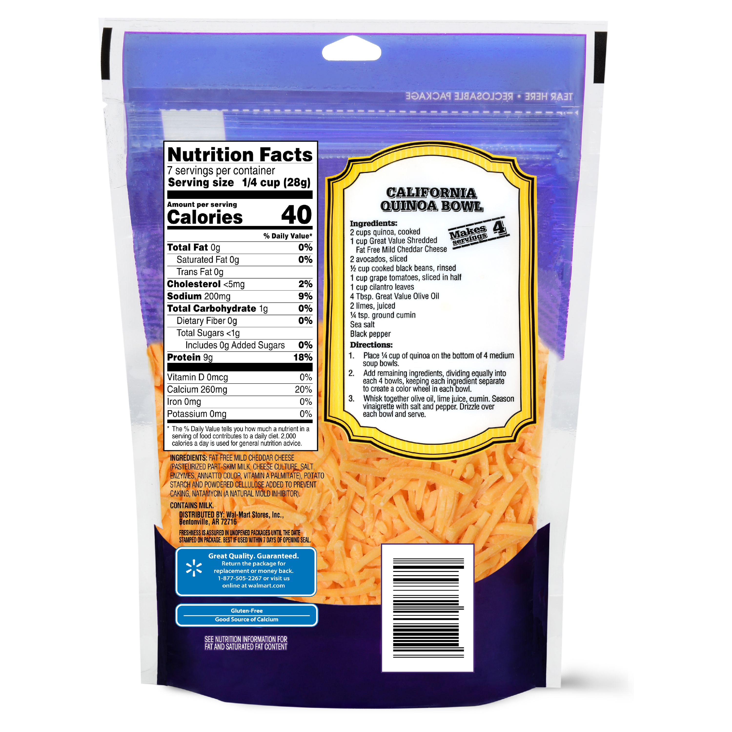 Great Value Fat Free Shredded Mild Cheddar Cheese 7 Oz Walmart Com Walmart Com